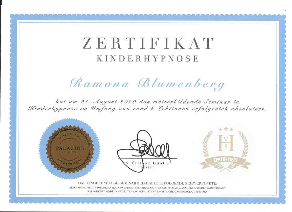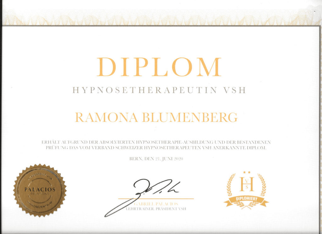Mit voller Begeisterung an der Arbeit mit dem Unterbewusstsein schloss ich die Ausbildung zur Dipl. zert. Hypnosetherapeutin ab.